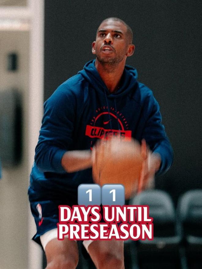 快船官方晒球员近期训练照,为新赛季倒计时:距离媒体日倒计时1天,距离训练营倒计时2天,距离季前赛倒计时11天,距离常规赛倒计时24天,距离常规赛主场揭幕战倒计时26天。这当中快船也是用今夏引进的新援做背景图,他们的加入也让球队有了更多的期待。