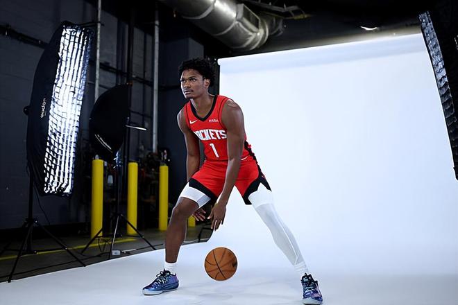 休斯顿火箭举行了媒体日活动,期间后场新星阿门-汤普森(Amen Thompson)接受了记者的采访,他在采访中谈到了自己在外线投篮能力方面的提升,自己在新赛季的目标以及对于新队友凯文-杜兰特(Kevin Durant)的印象。
