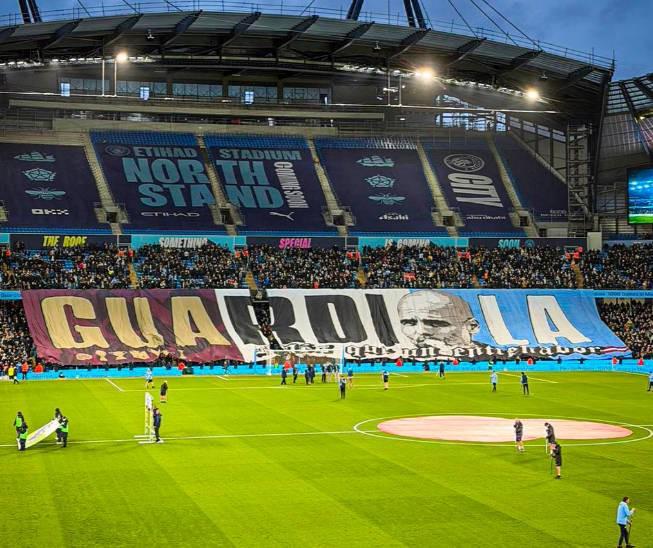 庆祝瓜帅执教生涯1000场里程碑,赛前阿提哈德展示特别TIFO